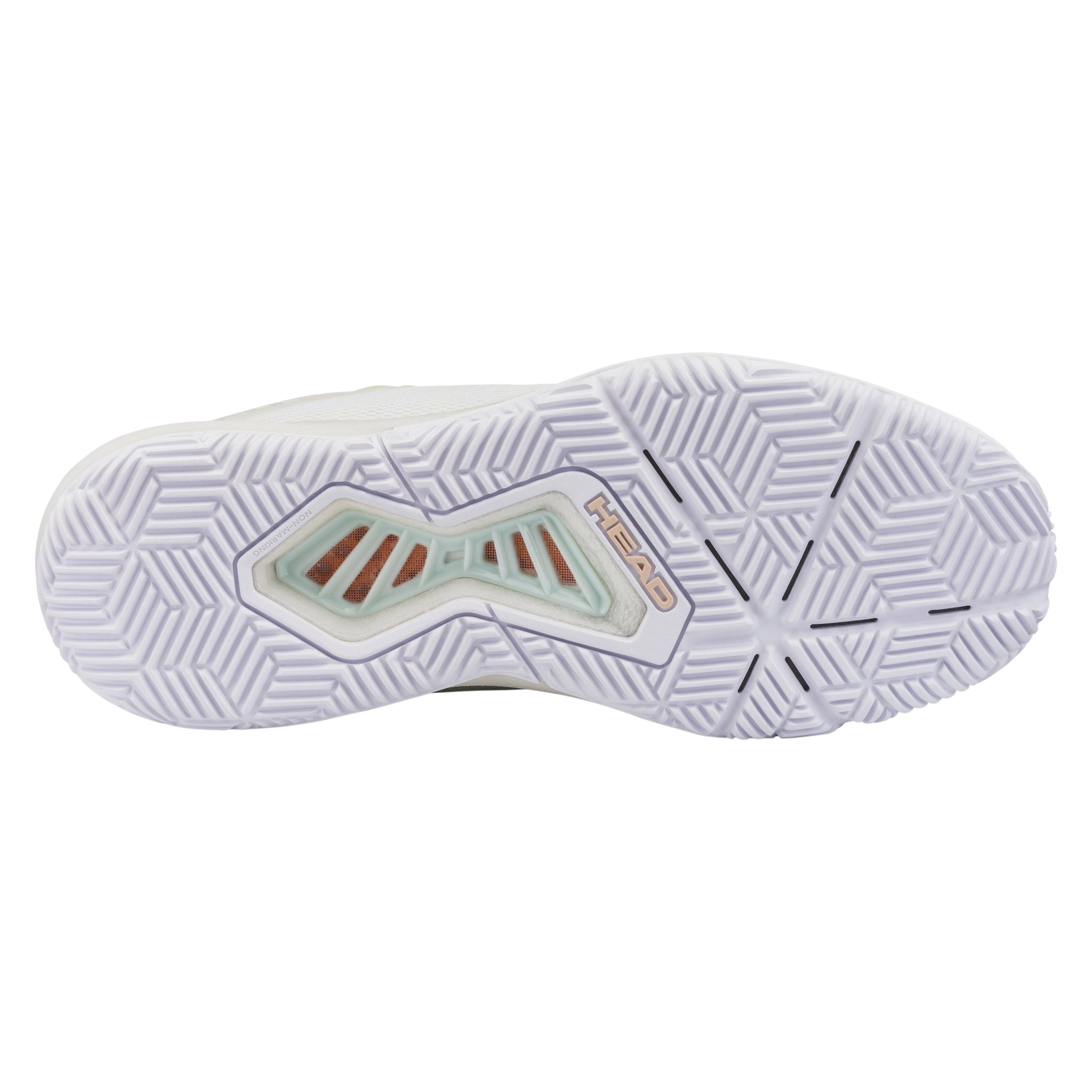 An advanced outsole pattern – which has been tested in cooperation with the WPT official turf provider, MONDO – enhances grip in all directions. For exceptional comfort, the shoe has a full elastic sock construction while the midsole contains DynaFoam, created with small air cells, which is lightweight and highly responsive. Stability comes from the combination of the TPU midfoot shank, the reinforced upper and the Lateral Control+ technology. To help keep your foot cool, the MOTION PRO PADEL LADIES has a breathable mesh and a ventilated, midfoot cooling system. The bold design, with a large HEAD logo, adds to the shoe's modern appeal.